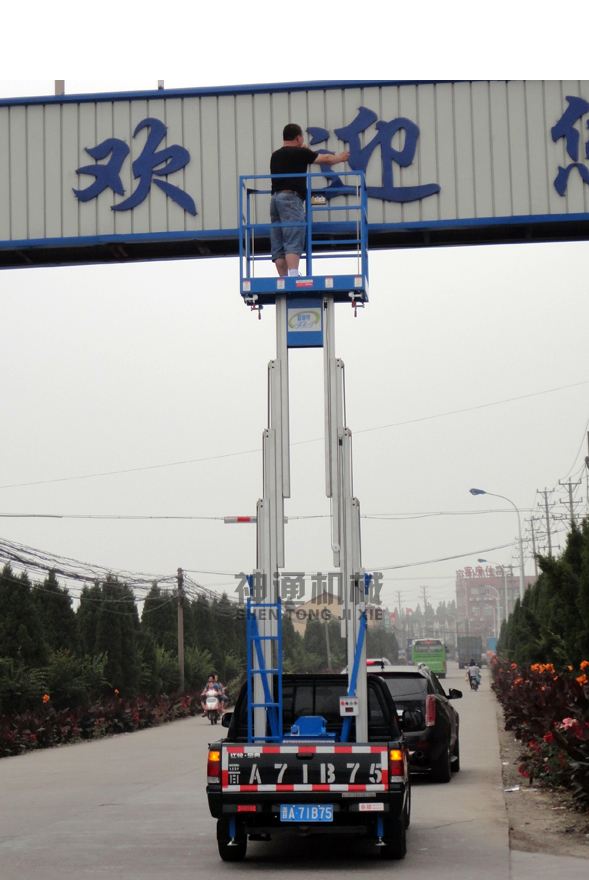 產(chǎn)品規(guī)格:車載鋁合金式升降平臺(tái)根據(jù)升降高度可分為:單柱6、8、10米,雙柱6、8、10、12米升降平臺(tái),設(shè)備載重150公斤至200公斤??蛻艨筛鶕?jù)需求選用解放、東風(fēng)、輕騎、福田、電瓶車等任何車型,設(shè)備直接采用汽車或電瓶的直接動(dòng)力升降。